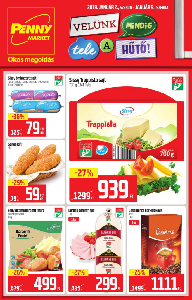 Penny Market legújabb akciós újság – íme a 2019.01.02-01.09 között érvényes ajánlatok.
